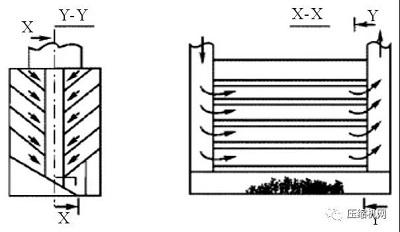 擋板常采用平板形和V形兩種類型,擋板放置時一定與迎風面有一定的傾角。其切割粒徑dp=10~40μm。為增加捕集效果,可以采用幾塊擋板組合成“百葉窗式”,形成分級捕集,其效率可以到達50%,切割粒徑也可到13.5μm。
