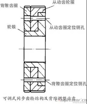 工藝螺桿壓縮機(jī)和干式無(wú)油螺桿壓縮機(jī)嚙合間隙靠同步齒輪進(jìn)行控制。同步齒輪的主動(dòng)、從動(dòng)齒輪與其對(duì)應(yīng)的為陽(yáng)、陰轉(zhuǎn)子具有相同的節(jié)圓。因?yàn)橹鲃?dòng)齒輪與陽(yáng)轉(zhuǎn)子是靠鍵連接的,可將它們看作一個(gè)整體齒輪。然而從動(dòng)主齒圈及背隙齒圈都套在輪轂上,當(dāng)輪轂與陰轉(zhuǎn)子通過(guò)鍵連接好后,兩齒圈相對(duì)于輪轂及陰轉(zhuǎn)子仍具有可調(diào)性。